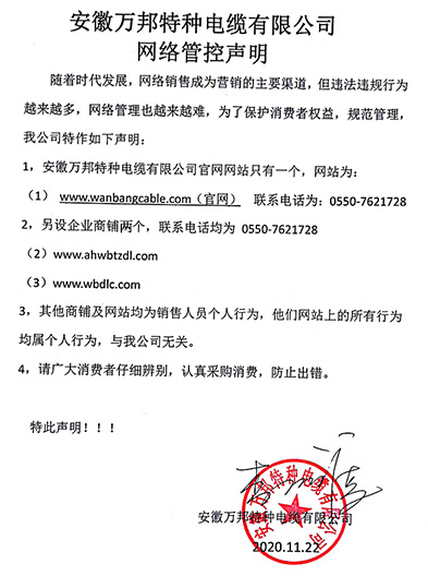 鄭重聲明:安徽萬邦特種電纜有限公司官方網站為:www_wanbangcable_com.fanhay.cn,除此之外無任何子網站或合作網站,其余均為假冒偽劣。電話:0550-7621728 13485756353 地 址:安徽省天長市滁州高新技術產業開發(fā)區經四路29號